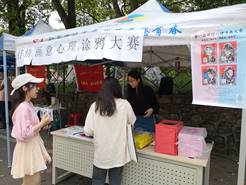 协办的心理健康教育季“绘生活,悟人生;助成长,追梦想”首届原创心理漫画大赛,大赛通过五彩斑斓的画笔来述说我们的故事、我们的情感、我们的梦想与生活点滴,许多途径摊点的同学都对这个活动充满了好奇,纷纷前来询问。