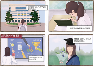 2018级本科生苏浩文由衷地感慨道:“我的作品是一个小长篇漫画,记录了一个俗套的不以爱情为主题的爱情故事,每个人心中都有秘密,我们彼此间需要了解,如此方能理解。在大学这个美丽的万花筒中,热烈的红,阴郁的蓝,迷茫的白,彼此交织混杂。也许,我们之间都需要认真的去“认识”。我的作品是结合高中身边发生的故事与大学时代的点滴感悟嫁接创作而成,其他同学的漫画都挺不错的,各有特色。”