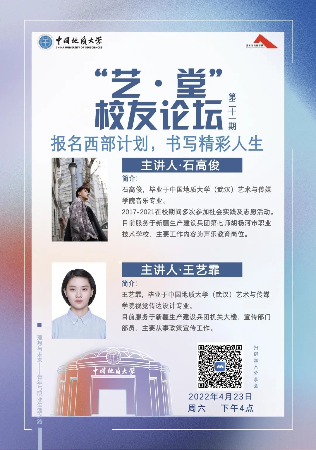 音乐专业毕业生石高俊和视觉传达设计专业毕业生王艺霏主讲。