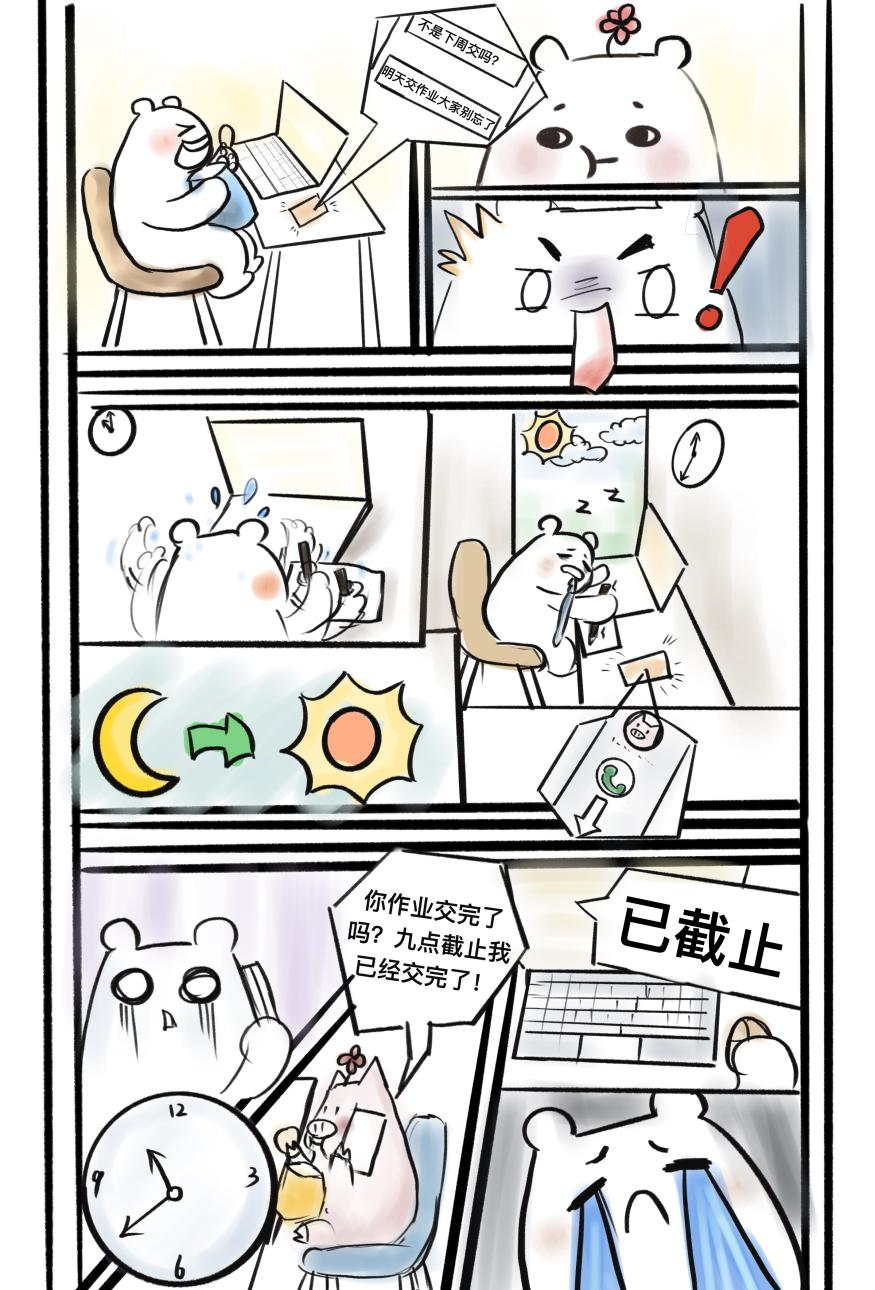 作者用漫画形式展示了大学生日常躺平到最后赶作业的故事。“躺平”是当今网络热词之一,与之对应的词是“内卷”。作者希望年轻人不要安于现状,敢于打破窘境,突破自我,积极向上!