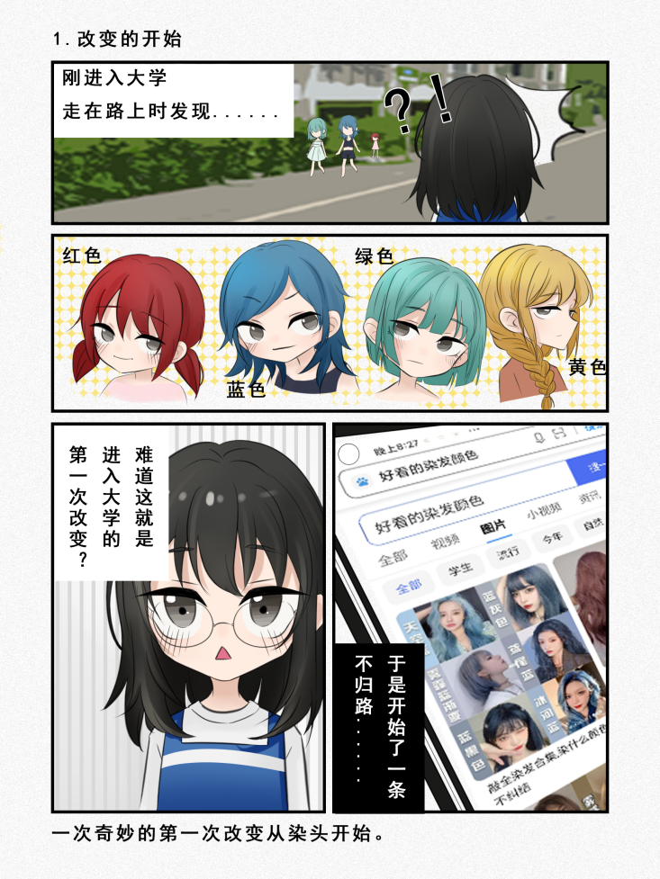 这组漫画由作者的真实经历改编而来,通过描绘作者刚进大学的心境,将初进大学的好奇与懵懂用漫画形式表现出来。漫画整体诙谐幽默,表现出大学生活的有趣并不仅限于各类活动,更在于感受生活中的点滴细节。