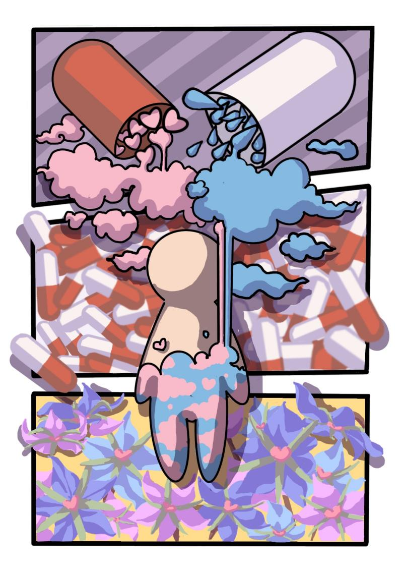 作品中的生活胶囊象征我们受到的爱与非议,它们慢慢倾倒流入我们的身体,组成了平凡而又美好的一生。胶囊里装着家人朋友老师的陪伴与鼓励,装着晚霞清风与细雨暖阳,装着星河山川与烂漫花海,装着无限美好将我们治愈。作者鼓励我们敢于战胜困难,不留遗憾,获得成功,从而获得心灵上的救赎。