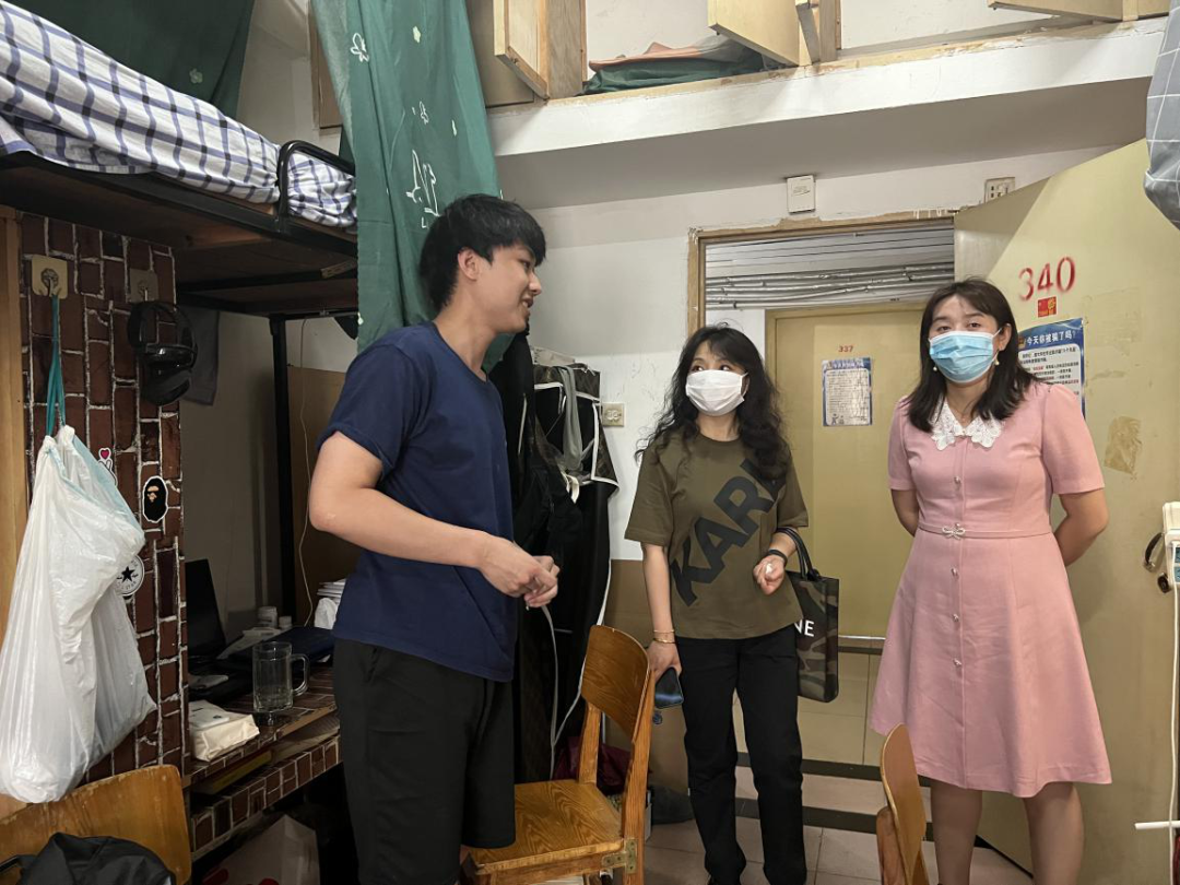 6月24日下午,贝博体育 党委书记郭秀蓉,院长桂宇晖,副院长张梅珍、杨喆、袁玥、彭静,党委副书记边建华以及学工组辅导员单湉艺、陈习良、曾戈晖,兼职辅导员高天时、杨彬彬、周悦、冯乾政一同走访了毕业生宿舍,并向同学们送去了临别之际的殷切祝福。