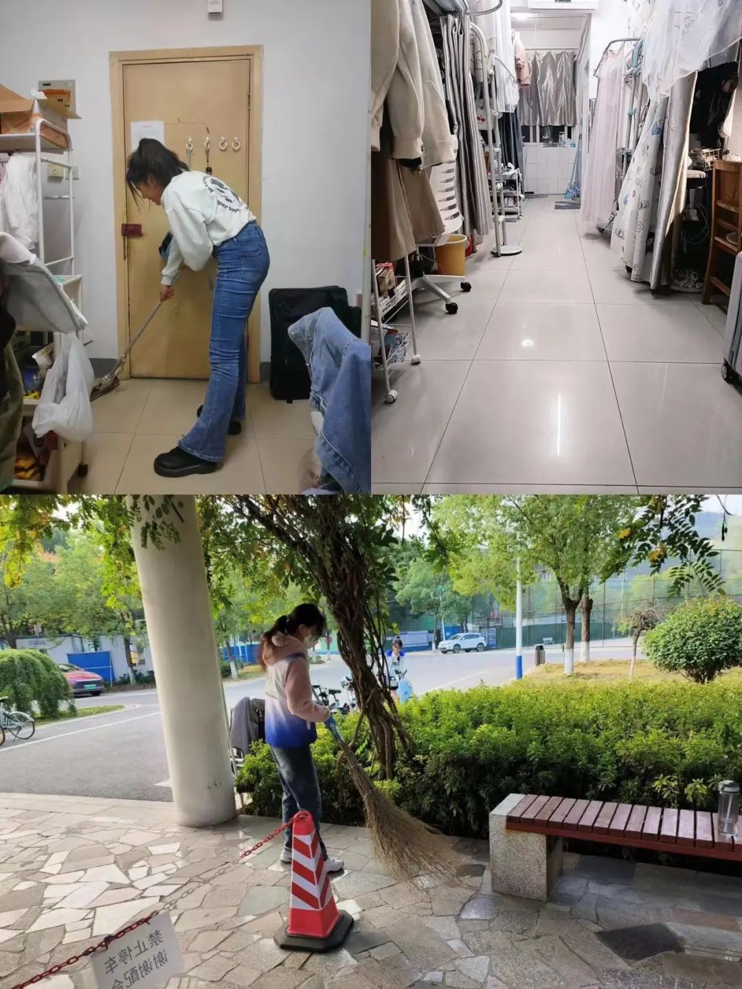 展厅、过道、周边绿化带等进行打扫。他们有的手提垃圾袋,清理艺媒楼周边垃圾;有的拿着扫把,清扫道路上的落叶;有的拿着抹布认真打扫办公桌、玻璃和座椅;还有的将共享单车一一摆放整齐,确保人人行动起来、宿舍整洁起来、贝博体育
