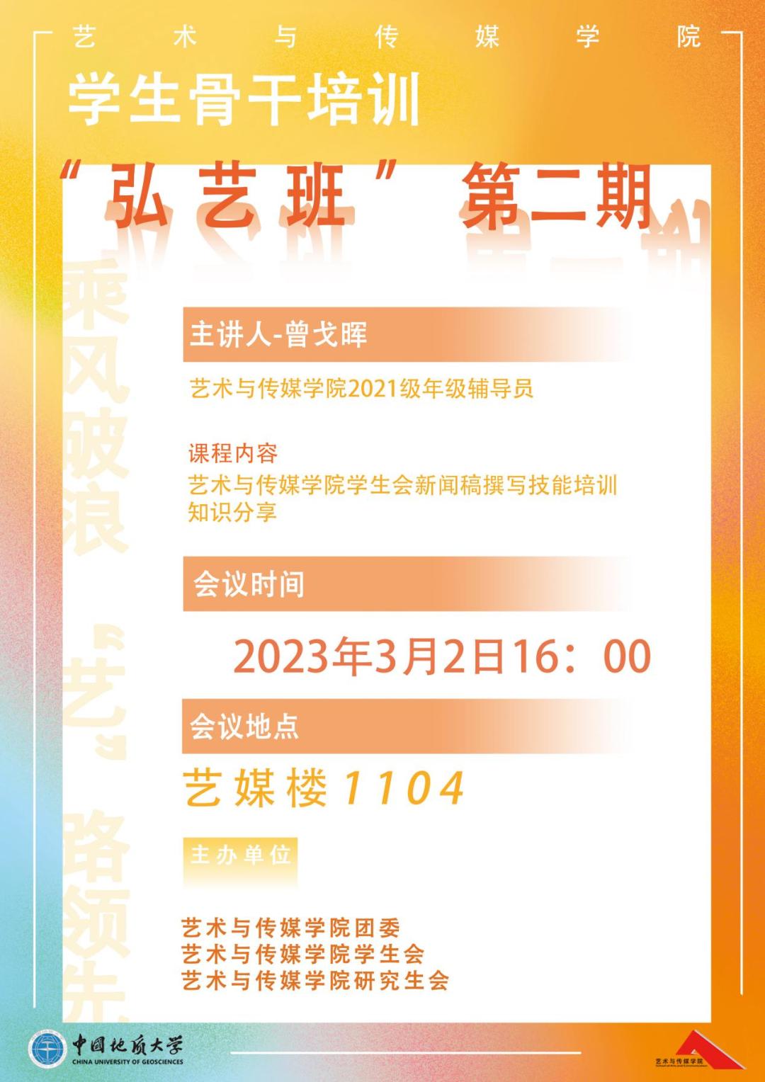2023年第二期“弘艺班”学生骨干培训在艺媒楼1104报告厅顺利展开,贝博体育