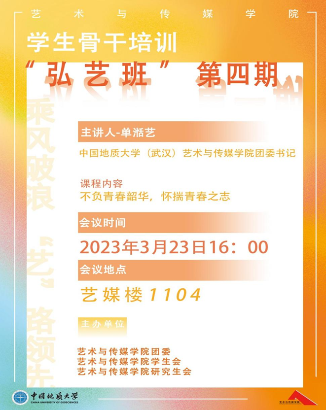 第四期“弘艺班”学生骨干培训在艺媒楼1104报告厅顺利展开,贝博体育
