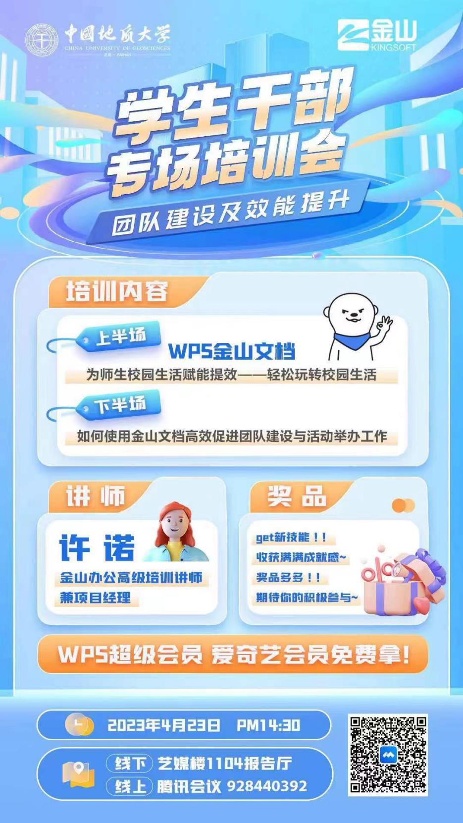 联合金山集团在艺媒楼1104报告厅举办了主题为“团队建设及效能提升”的学生干部专场培训会。本次培训会由金山办公高级培训讲师兼项目经理许诺受邀担任主讲。
