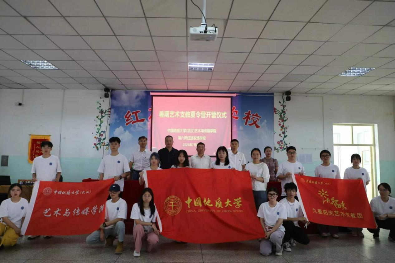 (通讯员 边建华 单湉艺 曾戈晖)为深入贯彻落实习近平总书记给中国农业大学科技小院同学们的回信精神以及总书记在二十大报告中提到的“做有理想、敢担当、能吃苦、肯奋斗的新时代好青年”,全面贯彻落实教育部有关“教育援疆”和“五育并举”的文件精神,根据学校与新疆生产建设兵团深度对接促进合作座谈会的会议精神,7月4日至7月14日,中国地质大学(武汉)九里阳光艺术支教团一行16人前往新疆生产建设兵团第六师红旗农场学校开展了艺术支教活动,旨在为当地的孩子们送去优秀教育资源,不断丰富美育实践成果。