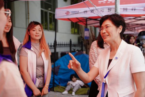 9月5日下午,校党委书记黄晓玫、校长王焰新来到艺媒迎新摊点了解贝博体育