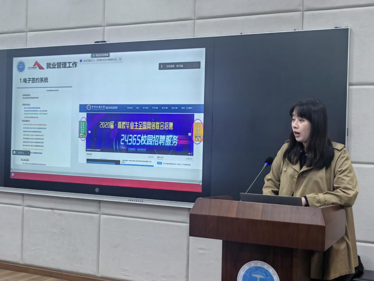 首先,由研究生辅导员单湉艺进行就业相关知识和工作进行讲解。单老师围绕就业业务知识、信息搜集管理、就业情况分析、就业工作要求四个方面,为毕业生们进行了全面深入的讲解。并且介绍了电子签约系统、就业推荐表以及签约流程等内容,同时结合贝博体育