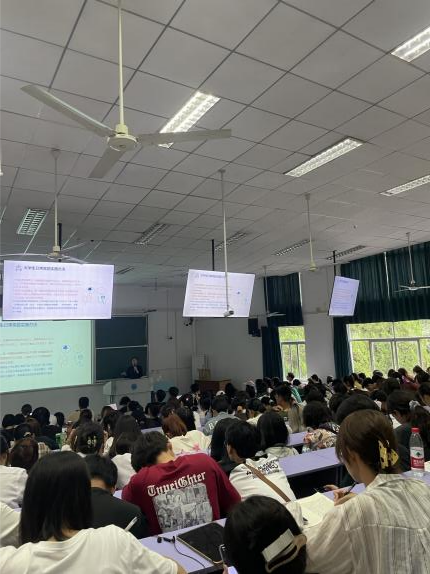 第五场讲座名为《“心”开始——谈新生心理适应》,由我校学生心理健康教育中心黄海老师主讲。黄老师用幽默诙谐的语言和真实生动的事例为同学们上了有趣而深刻的一课,新生需要从环境、角色、人际、学习四个方面去适应大学生活,并呼吁大家尽快调整心态,如遇到难以克服的问题积极向心理老师寻求帮助。
