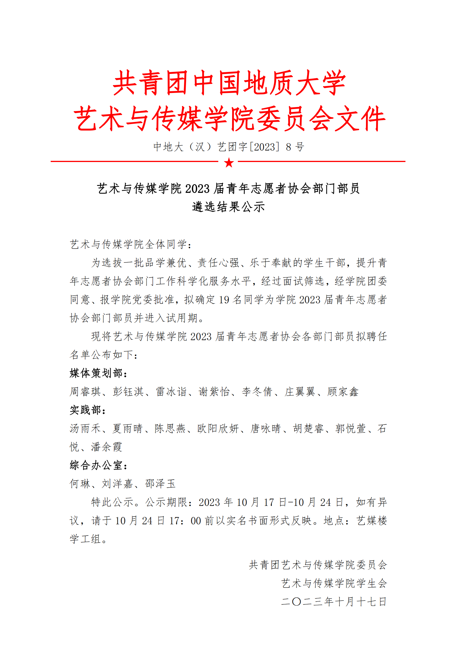 通知 | 贝博体育 2023届青年志愿者协会部门部员遴选结果公示