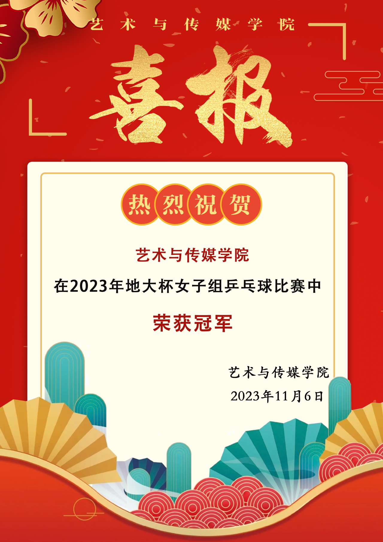 喜报!贝博体育 在2023年地大杯女子乒乓球比赛中荣获冠军