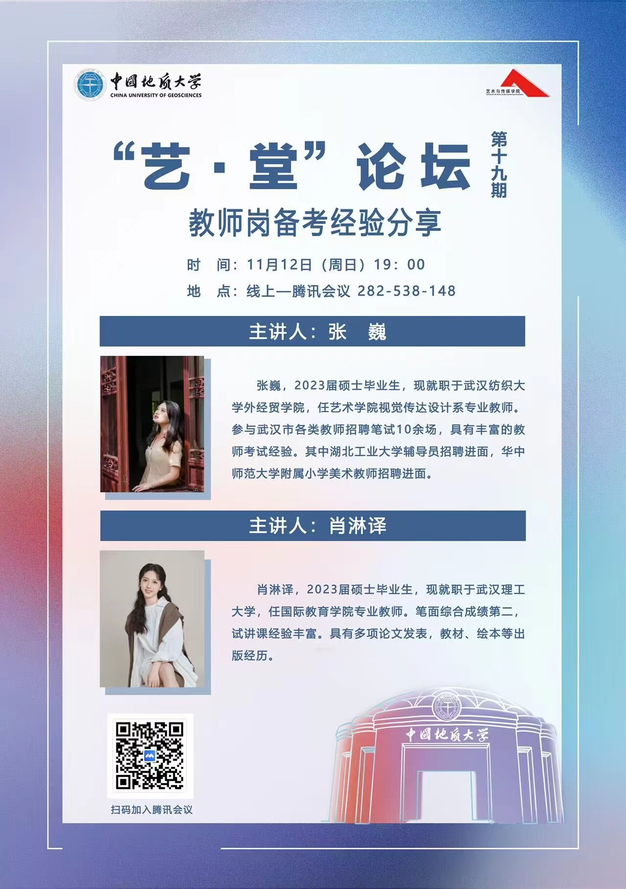 2023年11月12日晚上19:00,“艺·堂”论坛第十九期教师岗备考经验分享会于线上腾讯会议平台顺利举行。贝博体育