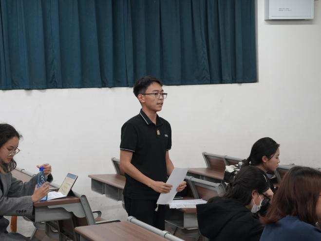 第一场辩论赛在北综楼202举行,张静怡、曹家维、刘嘉蕊担任主评,正方为161231班和161232班,反方为16s236班。双方就“应不应该取消网络屏蔽词制度”这个论题展开激烈讨论。双方辩手的发言引人深思,整场辩论精彩纷呈。总结陈词阶段双方四辩在辩论中不断结合自身优点,找出对方疏漏,“短时间高输出”地结束了发言。最后评委对双方的团队协作,语言表达,临场应变能力都给与了高度评价。最终正方取得胜利,正方一辩蔡宇翔获得最佳辩手的称号。