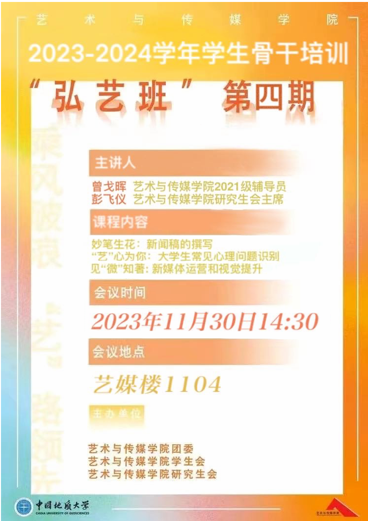 学生骨干培训“弘艺班”第四期于线上腾讯会议顺利开展。本次培训由贝博体育