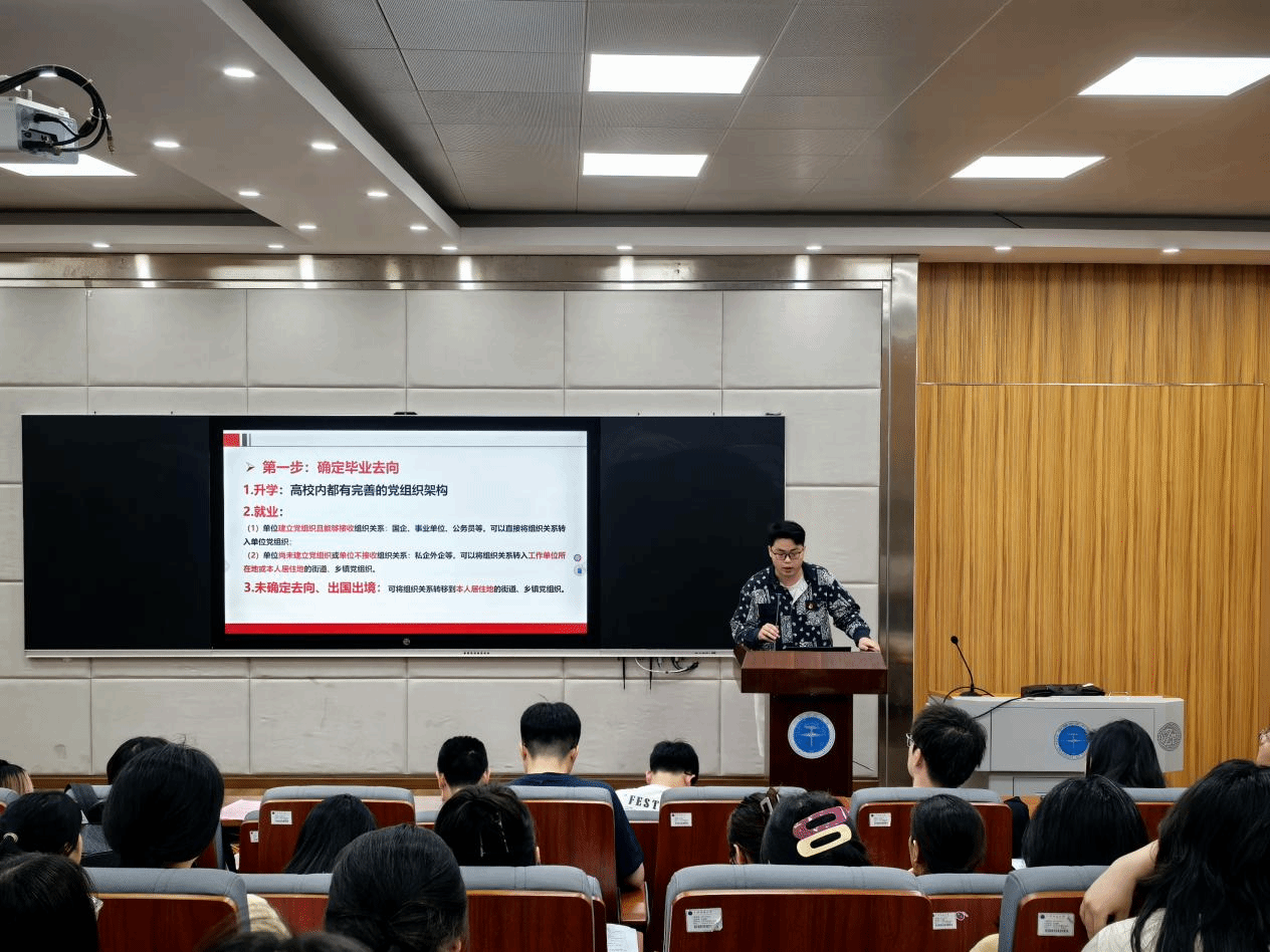 兼职辅导员赵立堃详细讲解了党员关系转接的注意事项及转接流程。提醒毕业生党员及时、准确地完成党组织关系转接工作,确保毕业生党员组织关系的延续性与规范性。
