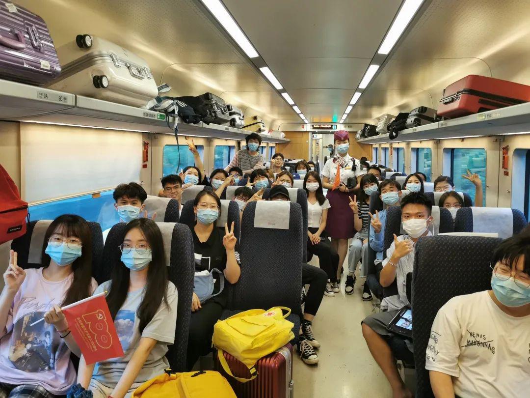 音乐系师生在前往暑期实习地点的列车上开展了“红歌献给党”快闪活动,副院长袁玥、音乐系副主任杨青带领着贝博体育