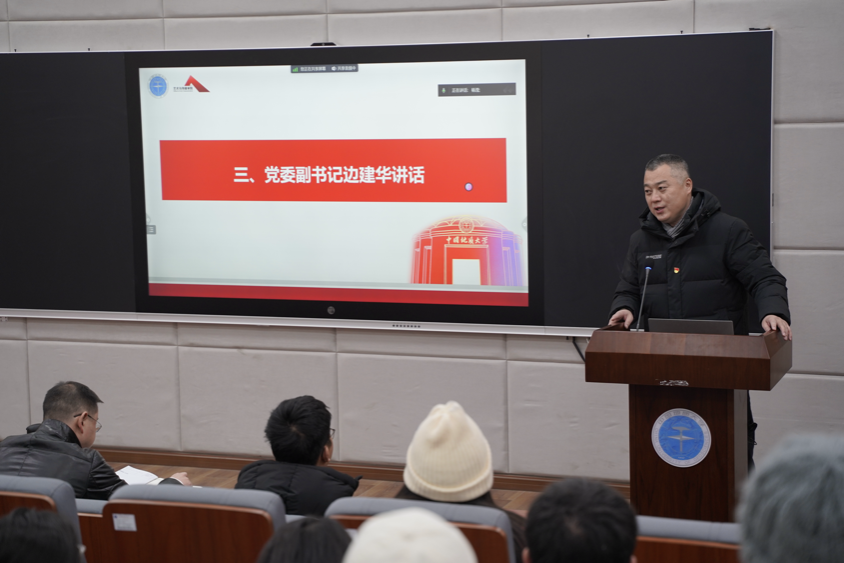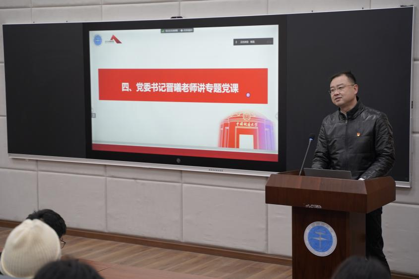 会议最后,党委书记晋曦进行专题党课的讲授。首先,他全面讲述了习近平文化思想的主要内容,从“坚定文化自信”“秉持开放包容”以及“坚持守正创新”三大主题展开论述,强调连续性、创新性、统一性、包容性、和平性是文化自信根本基石;其次结合自己学习习近平文化思想体会,为同学们分享“马克思主义基本原理同中国具体实际相结合、同中华优秀传统文化相结合”的实践意义,谈到自己的认识和想法,鼓励贝博体育