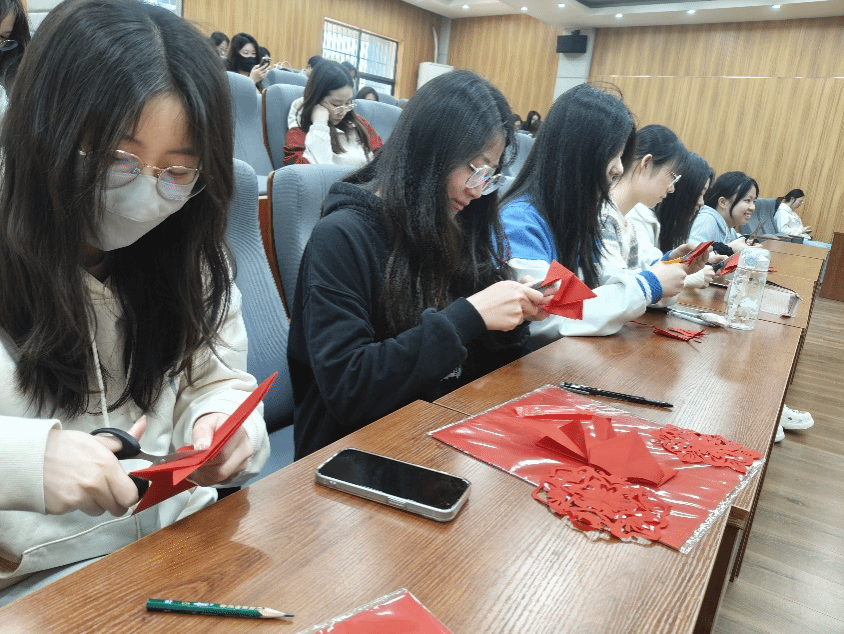 为深入学习贯彻党的二十大精神,传承和弘扬中华优秀传统文化,该团队在宣讲结束后积极鼓舞党员同志们参加剪纸的实践环节,讲解剪纸的具体操作步骤,真正做到“内化于心、外化于行”,领略非遗风采。
