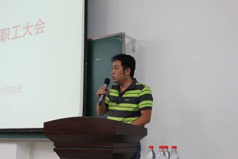 在艺媒楼1104召开全体教职工大会。会议由院党委书记郭秀蓉主持。