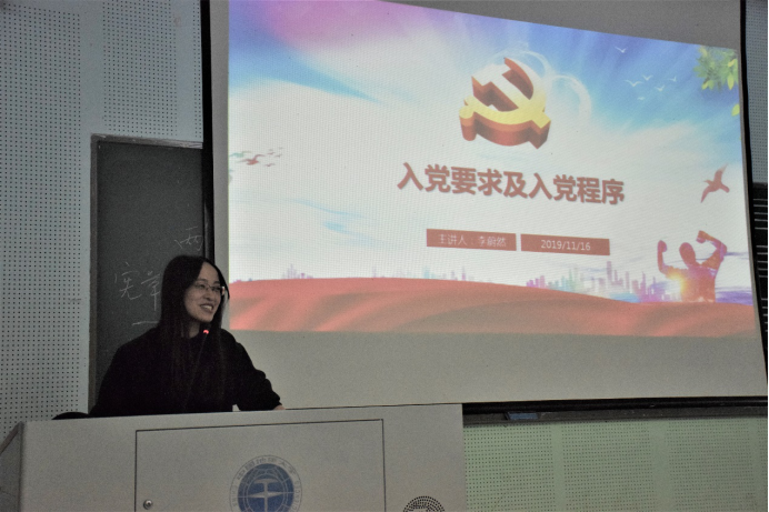 李蔚然老师从中国共产党的性质、申请入党的条件与动机、发展党员的程序与方法、主要材料书写标准与要求四个方面给我们详细讲解了“入党流程”。李老师向入党积极分子强调,切莫入党前拼命干,入党后松一半;谨记端正入党动机是一辈子的事情。组织上入党一时一事,思想上入党一生一世。