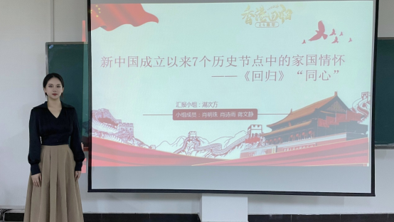 2021年5月27日中午12时30分,党支部于艺媒楼1312室召开了艺术党课分享活动。党支部肖明珠同志以新中国成立以来7个历史节点中的家国情怀——《回归》“同心”为主题,通过“PPT讲述+短视频放映”的方式带领支部党员共同回忆香港回归难忘瞬间,为党支部全体党员上了一节生动形象的艺术党课。